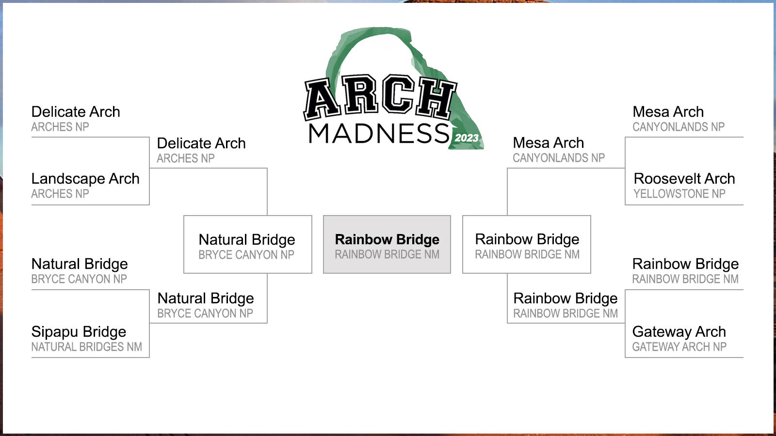 Thanks to all who took part in our spirited tournament bracket featuring eight national park icons. Contenders ranged from the roughly curvilinear to the spectacularly parabolic — that is to say, they were all arches, more or less.