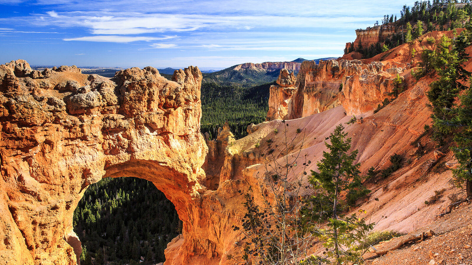 Natural Bridge is one of the most iconic sights in Bryce Canyon National Park. Its name is a bit of an error — natural bridges are formed by flowing water, while natural arches, such as this one, form from erosive forces.