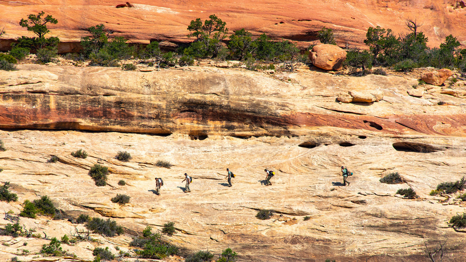 The archaeological site that he and his crew were working at stretched out for a quarter-mile along a ledge, overlooking Bears Ears National Monument’s sweeping landscape of petrified sand dunes and juniper-carpeted plateaus. It was a hot week in July in southeastern Utah, and laughter from Seowtewa and the crew echoed through the canyon.