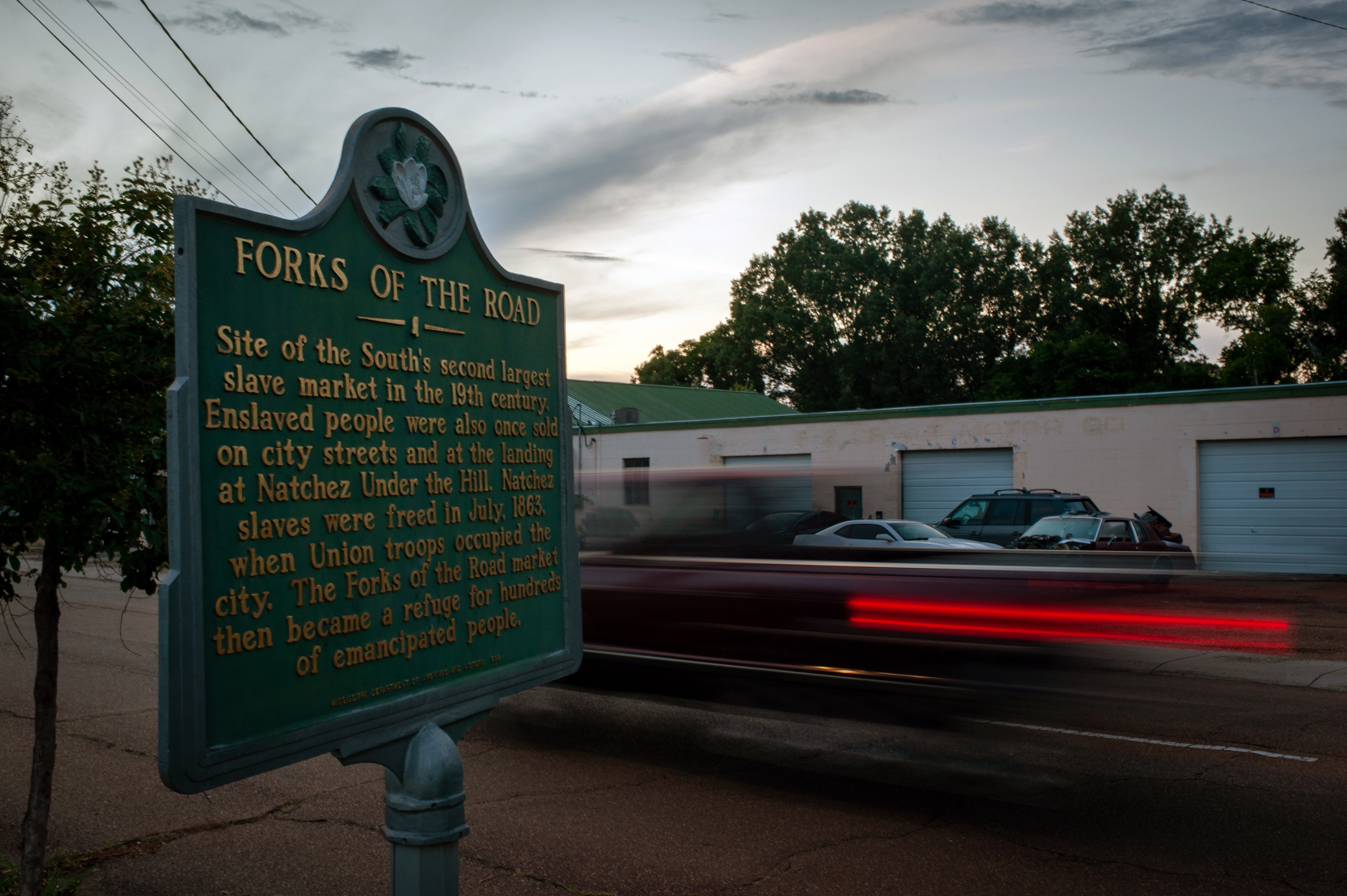 In a section of Natchez, Mississippi, troubled by crumbling streets and abandoned buildings, sits a grassy plot of land less than an acre in size. This piece of Forks of the Road is so small that it’s easy to miss, squeezed between two main thoroughfares that run downtown. One of these, historically called Washington Road, used to connect to the final stretch of the Natchez Trace, a traveling path first used by American Indians and then by European settlers, soldiers and traders — and maintained today by the National Park Service as a scenic parkway and (in spots) as a national scenic trail.